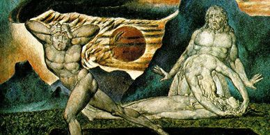 The Body of Abel Found by Adam and Eve (William Blake, 1826) illustrates the parents discovering their dead son, as Cain flees