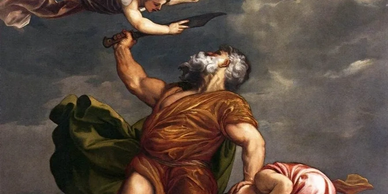 Sacrifice of Isaac, by Venetian Rennaissance painter Titian, in classical Mannerist style, was meant to be viewed from below