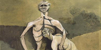 In this 1946 work, Abel looks on while Cain’s tormented face stares out of the picture, eyes unseen and his hair caught in a storm